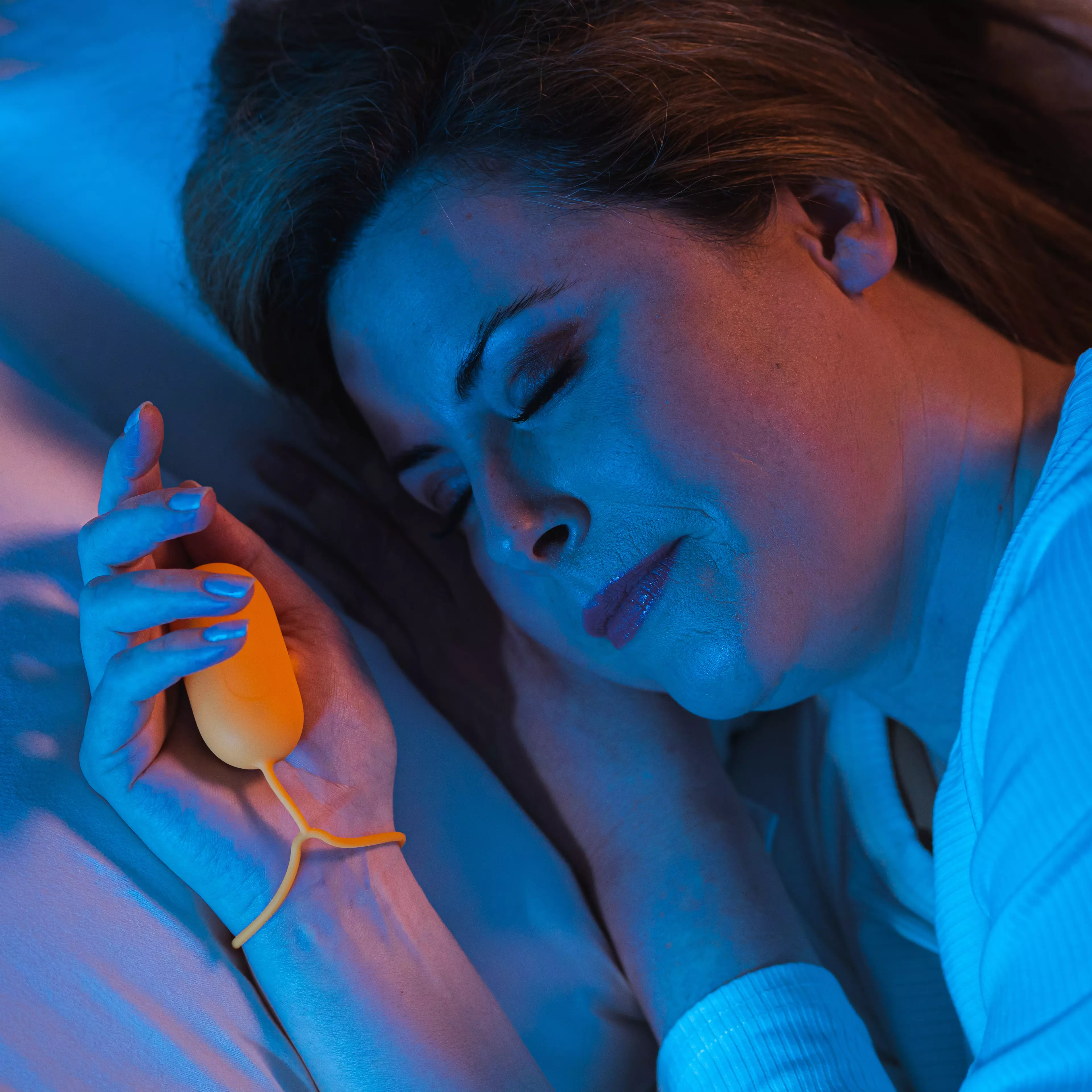 Definitely, yes! The Chill Pill® is designed to rest in the palm of your hands, stimulating your neural pathways which help calm your mind and body to promote better sleep. You won't have to worry about it falling off the bed or getting stuck under your leg all night, the sturdy, skin-friendly design lets you fall asleep and wake up well-rested without worry.
