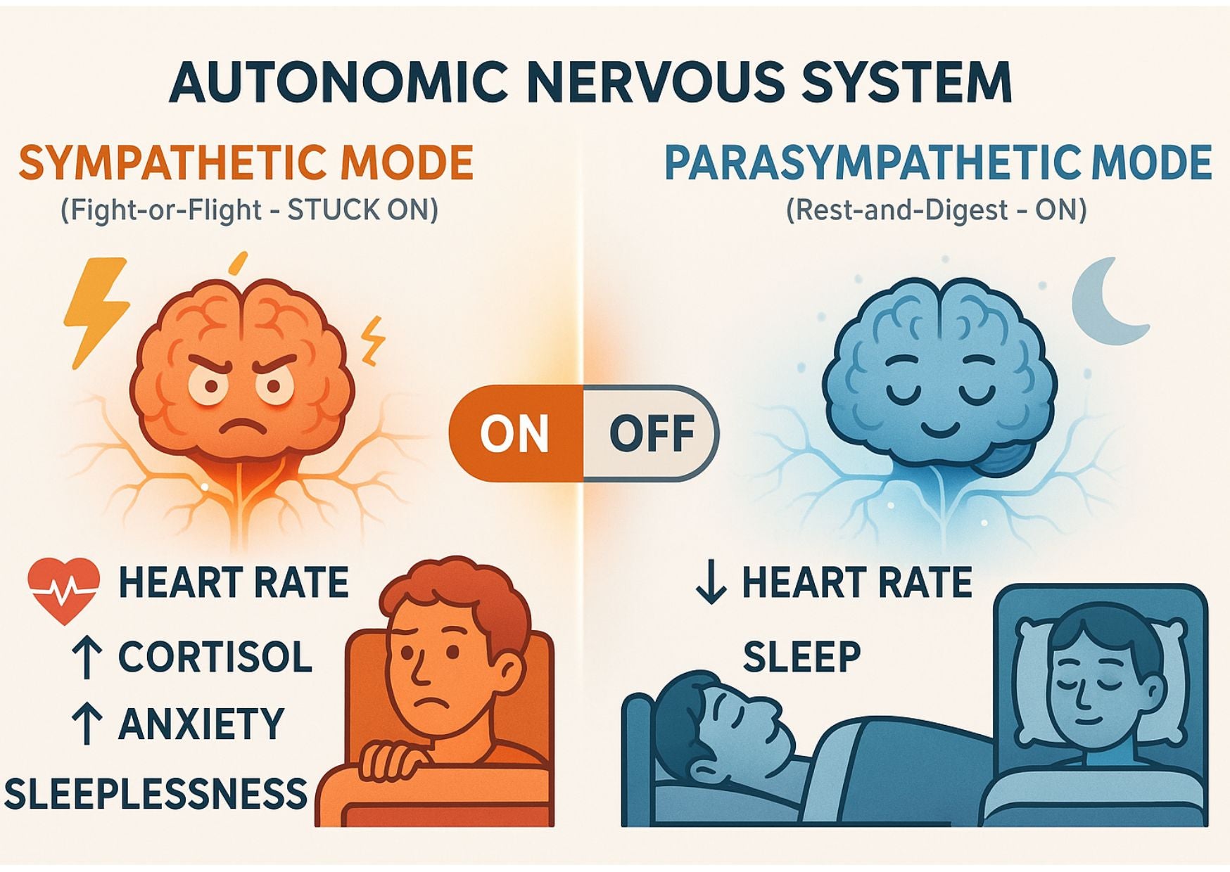 No amount of "calm down" self-talk, meditation apps, or counting sheep can manually switch your nervous system from "ON" to "OFF."