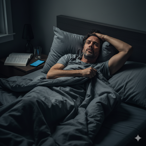 Lying awake for hours while exhaustion builds but sleep never comes